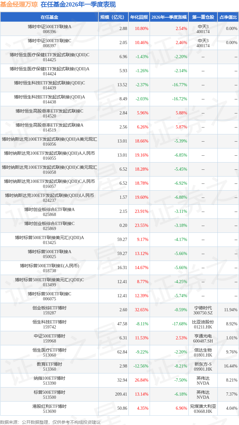 证券之星消息,日前博时中证500ETF联接C基金公布一季报,2026年一季度最新规模2.05亿元,季度净值涨幅为2.46%。