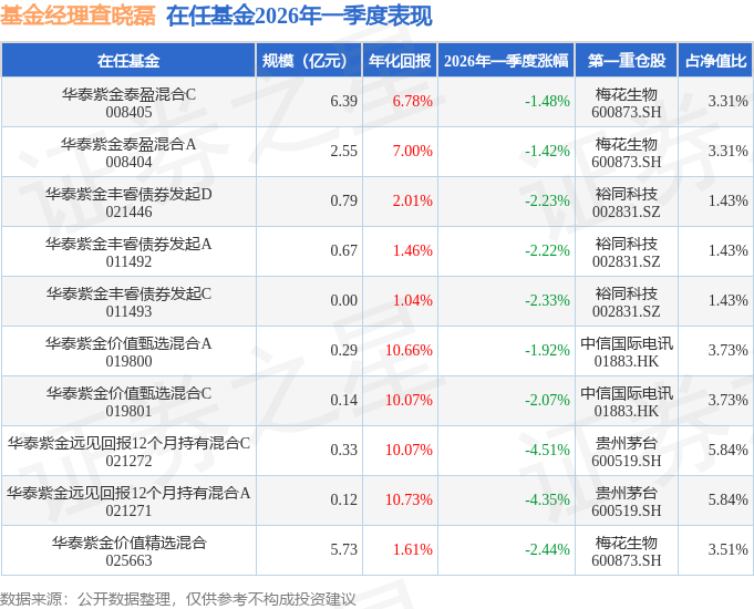 证券之星消息,日前华泰紫金泰盈混合A基金公布一季报,2026年一季度最新规模2.55亿元,季度净值涨幅为-1.42%。