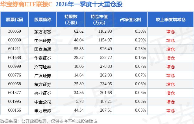 证券之星消息,日前华宝券商ETF联接C基金公布一季报,2026年一季度最新规模29.39亿元,季度净值涨幅为-14.61%。