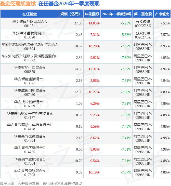 证券之星消息,日前华安智能生活混合A基金公布一季报,2026年一季度最新规模14.35亿元,季度净值涨幅为-7.67%。