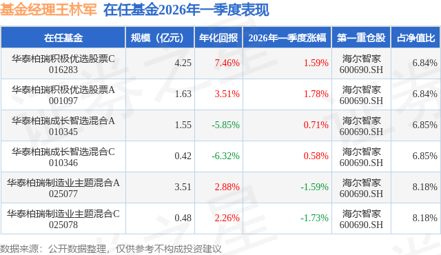证券之星消息,日前华泰柏瑞成长智选混合C基金公布一季报,2026年一季度最新规模0.42亿元,季度净值涨幅为0.58%。
