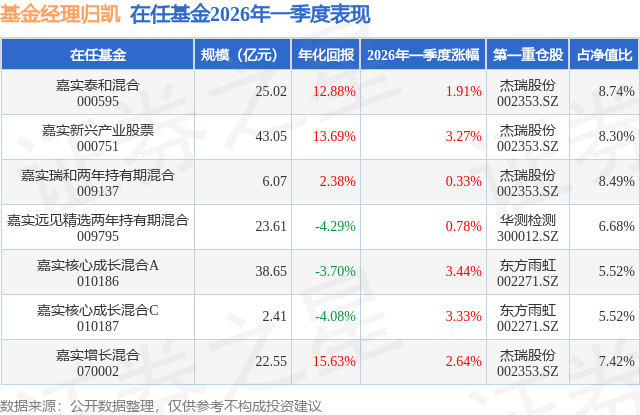 证券之星消息,日前嘉实核心成长混合C基金公布一季报,2026年一季度最新规模2.41亿元,季度净值涨幅为3.33%。