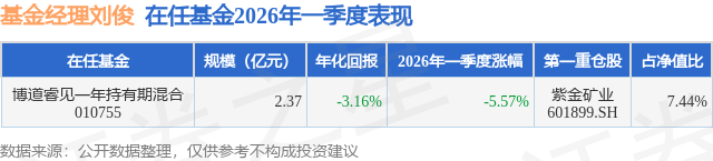 证券之星消息,日前博道睿见一年持有期混合基金公布一季报,2026年一季度最新规模2.37亿元,季度净值涨幅为-5.57%。