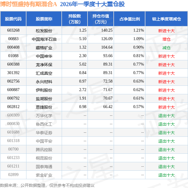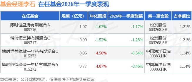 证券之星消息,日前博时恒盛持有期混合A基金公布一季报,2026年一季度最新规模1.07亿元,季度净值涨幅为-1.17%。