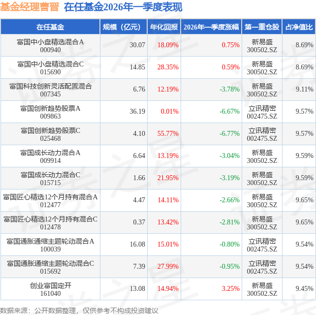 证券之星消息,日前创业富国定开基金公布一季报,2026年一季度最新规模13.08亿元,季度净值涨幅为3.25%。