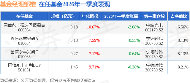 证券之星消息,日前圆信永丰兴研C基金公布一季报,2026年一季度最新规模0.27亿元,季度净值涨幅为-0.64%。