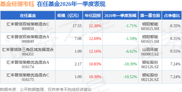 证券之星消息,日前汇丰晋信策略优选混合A基金公布一季报,2026年一季度最新规模2.17亿元,季度净值涨幅为-10.39%。