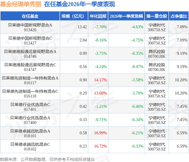 贝莱德先进制造一年持有混合A现任基金经理为单秀丽 陈之渊,本季度增聘基金经理单秀丽、陈之渊,近期离任的基金经理为邹江渝。其中在任基金经理单秀丽已从业4年又229天,2025年9月1日正式接手管理贝莱德先进制造一年持有混合A,任职期间累计回报为16.52%。目前还管理着10只基金产品(包括A类和C类)。