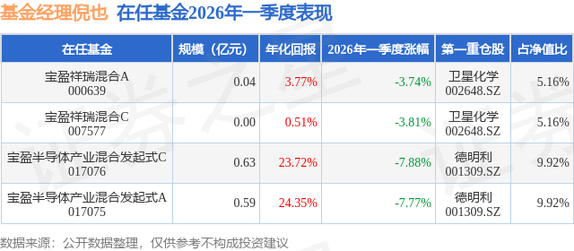 证券之星消息,日前宝盈半导体产业混合发起式A基金公布一季报,2026年一季度最新规模0.59亿元,季度净值涨幅为-7.77%。