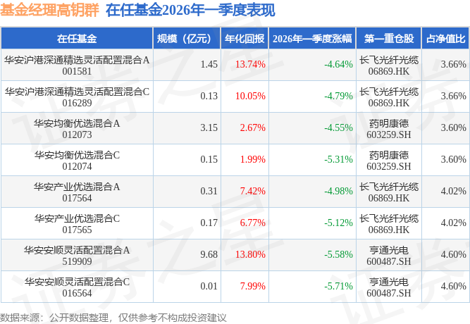 证券之星消息,日前华安沪港深通精选灵活配置混合C基金公布一季报,2026年一季度最新规模0.13亿元,季度净值涨幅为-4.79%。