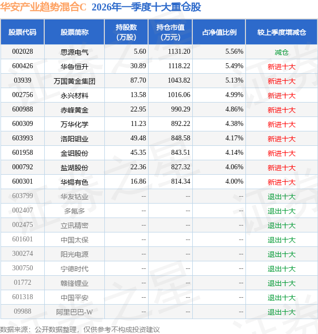 证券之星消息,日前华安产业趋势混合C基金公布一季报,2026年一季度最新规模0.12亿元,季度净值涨幅为-1.84%。