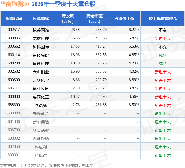 证券之星消息,日前华商均衡30基金公布一季报,2026年一季度最新规模0.75亿元,季度净值涨幅为-7.05%。