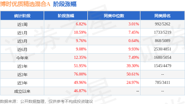 从业绩表现来看,博时优质精选混合A基金过去一年净值涨幅为51.94%,在同类基金中排名1545/4479,同类基金过去一年净值涨幅中位数为39.3%。而基金过去一年的最大回撤为-14.94%,成立以来的最大回撤为-29.42%。