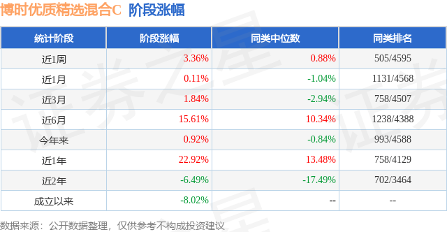 从业绩表现来看,博时优质精选混合C基金过去一年净值涨幅为51.03%,在同类基金中排名1595/4479,同类基金过去一年净值涨幅中位数为39.3%。而基金过去一年的最大回撤为-15.02%,成立以来的最大回撤为-29.7%。
