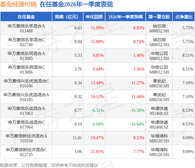 证券之星消息,日前申万菱信兴乐优选混合A基金公布一季报,2026年一季度最新规模0.32亿元,季度净值涨幅为11.44%。