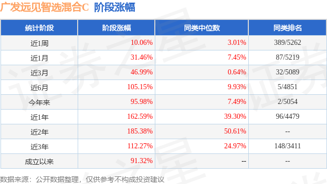 从业绩表现来看,广发远见智选混合C基金过去一年净值涨幅为162.59%,在同类基金中排名96/4479,同类基金过去一年净值涨幅中位数为39.3%。而基金过去一年的最大回撤为-16.86%,成立以来的最大回撤为-40.25%。