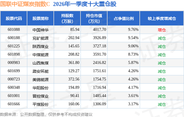 证券之星消息,日前国联中证煤炭指数C基金公布一季报,2026年一季度最新规模1.06亿元,季度净值涨幅为18.38%。