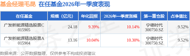证券之星消息,日前广发新能源精选股票C基金公布一季报,2026年一季度最新规模24.18亿元,季度净值涨幅为10.14%。