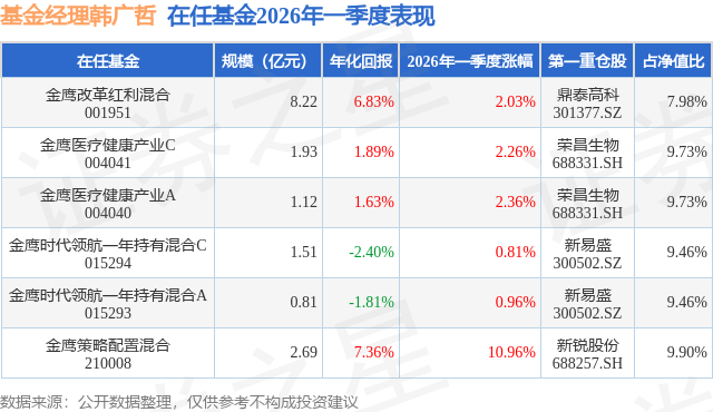证券之星消息,日前金鹰时代领航一年持有混合A基金公布一季报,2026年一季度最新规模0.81亿元,季度净值涨幅为0.96%。