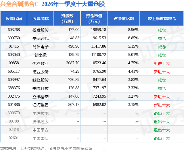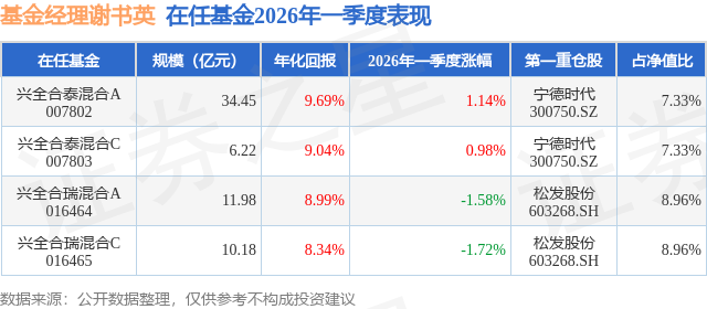 证券之星消息,日前兴全合瑞混合C基金公布一季报,2026年一季度最新规模10.18亿元,季度净值涨幅为-1.72%。
