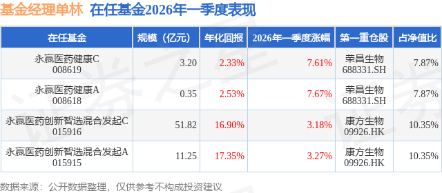 证券之星消息,日前永赢医药创新智选混合发起C基金公布一季报,2026年一季度最新规模51.82亿元,季度净值涨幅为3.18%。