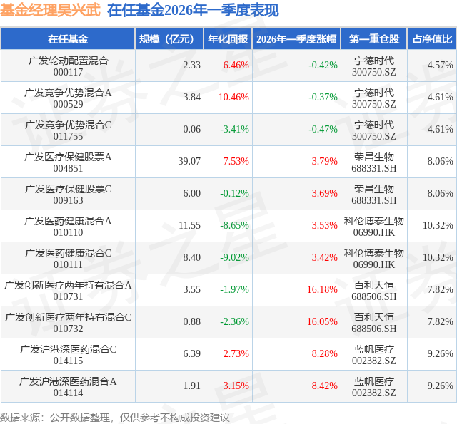 证券之星消息,日前广发沪港深医药混合C基金公布一季报,2026年一季度最新规模6.39亿元,季度净值涨幅为8.28%。