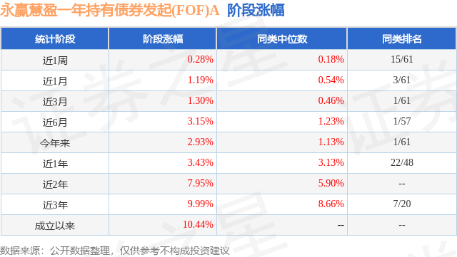 证券之星消息,日前永赢慧盈一年持有债券发起(FOF)A基金公布一季报,2026年一季度最新规模0.33亿元,季度净值涨幅为2.01%。