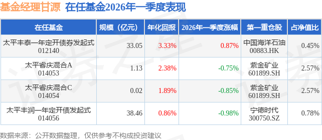 证券之星消息,日前太平睿庆混合A基金公布一季报,2026年一季度最新规模1.13亿元,季度净值涨幅为-0.75%。