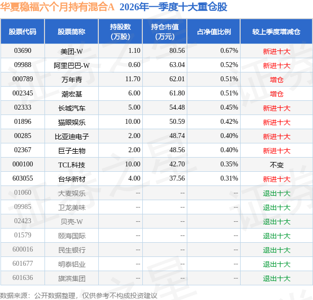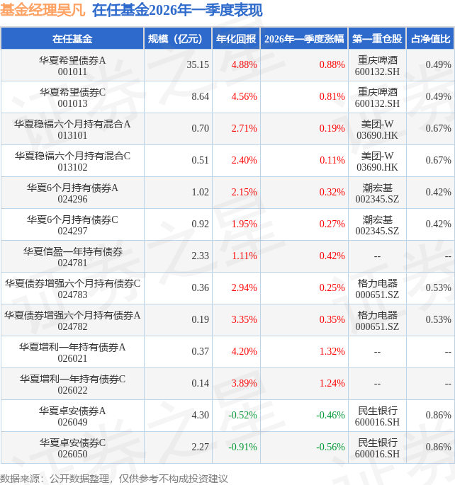 证券之星消息,日前华夏稳福六个月持有混合A基金公布一季报,2026年一季度最新规模0.7亿元,季度净值涨幅为0.19%。