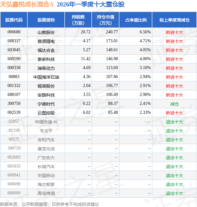 证券之星消息,日前天弘鑫悦成长混合A基金公布一季报,2026年一季度最新规模0.18亿元,季度净值涨幅为1.6%。