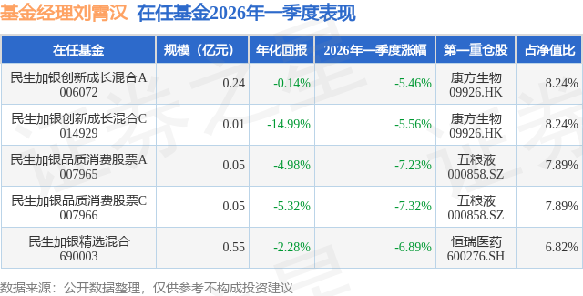 证券之星消息,日前民生加银创新成长混合C基金公布一季报,2026年一季度最新规模0.01亿元,季度净值涨幅为-5.56%。