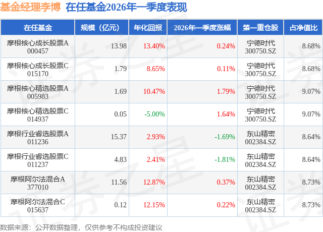 证券之星消息,日前摩根核心精选股票C基金公布一季报,2026年一季度最新规模0.05亿元,季度净值涨幅为1.64%。