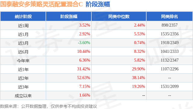 从业绩表现来看,国泰融安多策略灵活配置混合C基金过去一年净值涨幅为31.42%,在同类基金中排名1107/2296,同类基金过去一年净值涨幅中位数为29.9%。而基金过去一年的最大回撤为-11.38%,成立以来的最大回撤为-41.82%。