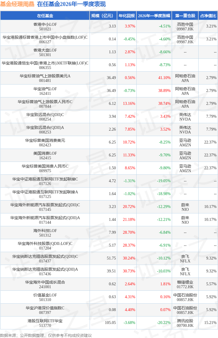 证券之星消息,日前港股互联网ETF华宝基金公布一季报,2026年一季度最新规模105.05亿元,季度净值涨幅为-20.22%。