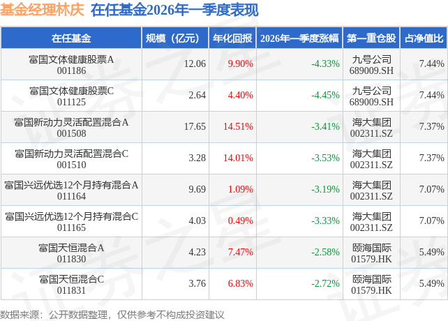 从基金规模来看,富国天恒混合A基金2026年一季度公布的基金规模为4.23亿元,较上一期规模3.93亿元变化了3018.3万元,环比变化了7.68%。该基金最新一期资产配置为:股票占净值比73.68%,无债券类资产,现金占净值比26.8%。从基金持仓来看,该基金当季前十大股票仓位达44.13%,第一大重仓股为颐海国际(01579),持仓占比为5.49%。