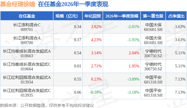 证券之星消息,日前长江红利回报混合发起式C基金公布一季报,2026年一季度最新规模0.06亿元,季度净值涨幅为-3.18%。