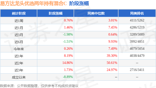 从业绩表现来看,易方达龙头优选两年持有混合C基金过去一年净值涨幅为8.19%,在同类基金中排名4038/4479,同类基金过去一年净值涨幅中位数为39.3%。而基金过去一年的最大回撤为-8.73%,成立以来的最大回撤为-31.72%。