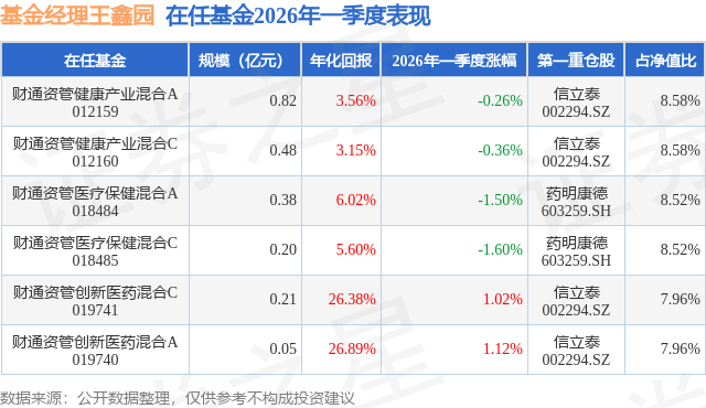证券之星消息,日前财通资管健康产业混合A基金公布一季报,2026年一季度最新规模0.82亿元,季度净值涨幅为-0.26%。