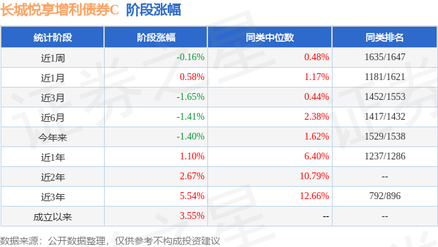 从业绩表现来看,长城悦享增利债券C基金过去一年净值涨幅为1.1%,在同类基金中排名1237/1286,同类基金过去一年净值涨幅中位数为6.4%。而基金过去一年的最大回撤为-3.05%,成立以来的最大回撤为-3.05%。