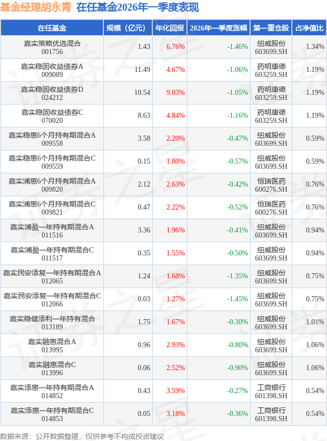 证券之星消息,日前嘉实民安添复一年持有期混合A基金公布一季报,2026年一季度最新规模1.24亿元,季度净值涨幅为-1.35%。