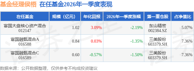 证券之星消息,日前富国大盘核心资产混合基金公布一季报,2026年一季度最新规模1.02亿元,季度净值涨幅为-2.19%。