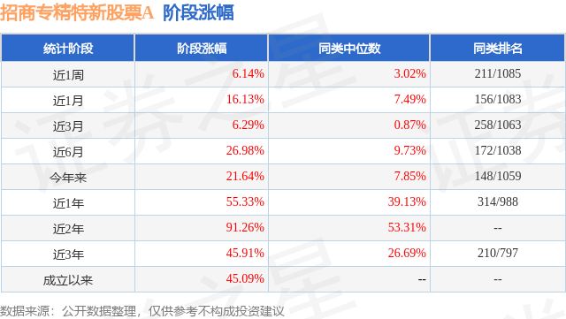 从业绩表现来看,招商专精特新股票A基金过去一年净值涨幅为55.33%,在同类基金中排名314/988,同类基金过去一年净值涨幅中位数为39.13%。而基金过去一年的最大回撤为-16.44%,成立以来的最大回撤为-42.25%。