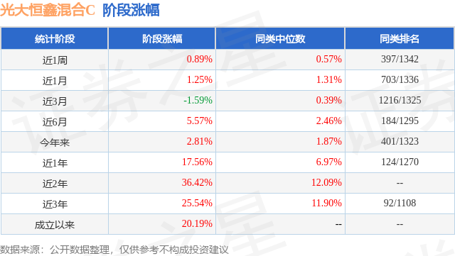 证券之星消息,日前光大恒鑫混合C基金公布一季报,2026年一季度最新规模0.04亿元,季度净值涨幅为0.15%。