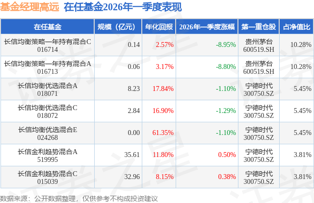 证券之星消息,日前长信金利趋势混合C基金公布一季报,2026年一季度最新规模32.96亿元,季度净值涨幅为0.38%。