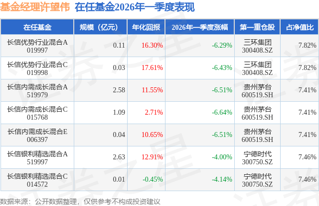 证券之星消息,日前长信内需成长混合C基金公布一季报,2026年一季度最新规模1.09亿元,季度净值涨幅为-6.64%。