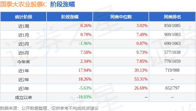 从业绩表现来看,国泰大农业股票C基金过去一年净值涨幅为17.94%,在同类基金中排名719/988,同类基金过去一年净值涨幅中位数为39.13%。而基金过去一年的最大回撤为-8.61%,成立以来的最大回撤为-48.92%。