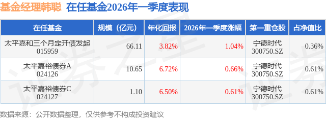 证券之星消息,日前太平嘉和三个月定开债发起基金公布一季报,2026年一季度最新规模66.11亿元,季度净值涨幅为1.04%。