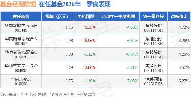 证券之星消息,日前华商新常态混合C基金公布一季报,2026年一季度最新规模0.0亿元,季度净值涨幅为-6.54%。