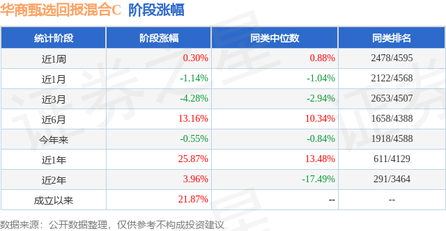 从业绩表现来看,华商甄选回报混合C基金过去一年净值涨幅为74.48%,在同类基金中排名789/4479,同类基金过去一年净值涨幅中位数为39.3%。而基金过去一年的最大回撤为-11.25%,成立以来的最大回撤为-27.31%。