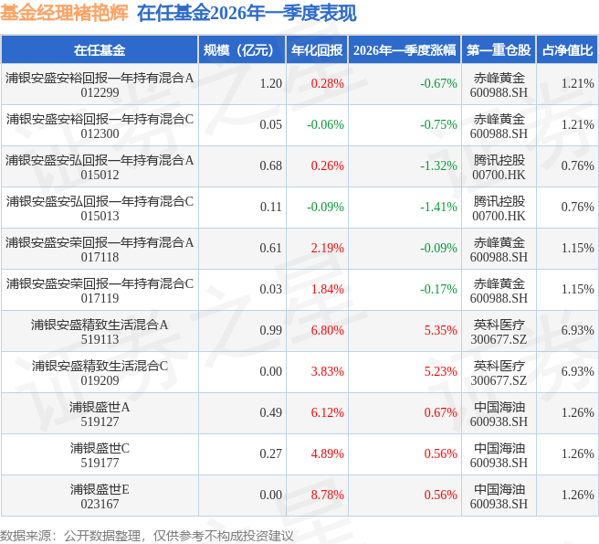 证券之星消息,日前浦银安盛安弘回报一年持有混合A基金公布一季报,2026年一季度最新规模0.68亿元,季度净值涨幅为-1.32%。